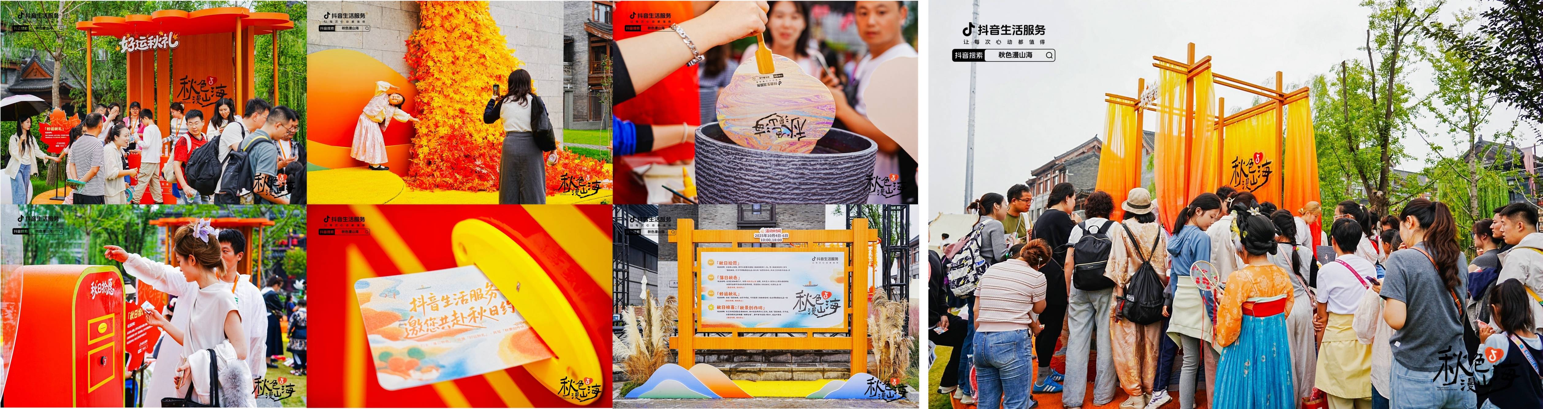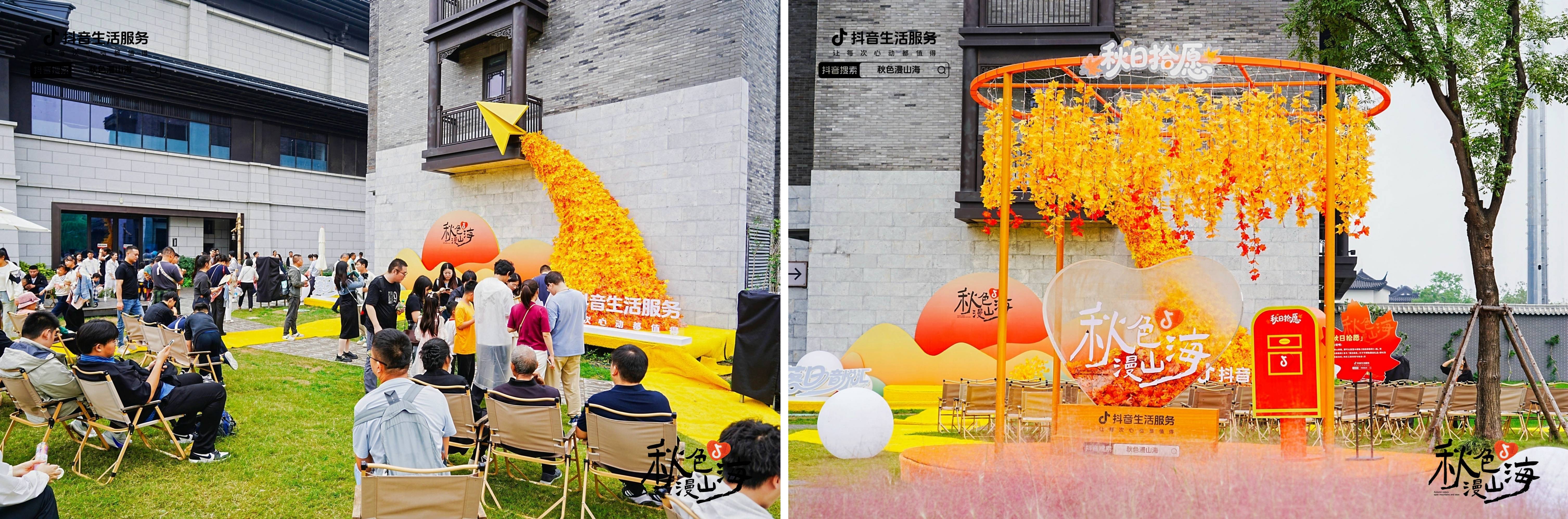 线下场景作为连接用户与商家的关键触点,「秋色漫山海」围绕头客商家特色场景打造差异化运营。针对不同商家的场景风格,定制秋日主题互动物料与高颜值巨型打卡装置,用视觉吸引力激发游客主动拍摄分享的意愿;同时配套定制周边礼品,引导用户发布内容时带上商家定位与活动话题,形成UGC内容的裂变传播效应。这种运营模式不仅帮商家积累了大量真实优质的口碑内容,更直接带动线下客流活跃度显著提升,为商家交易转化提供了有力支撑。